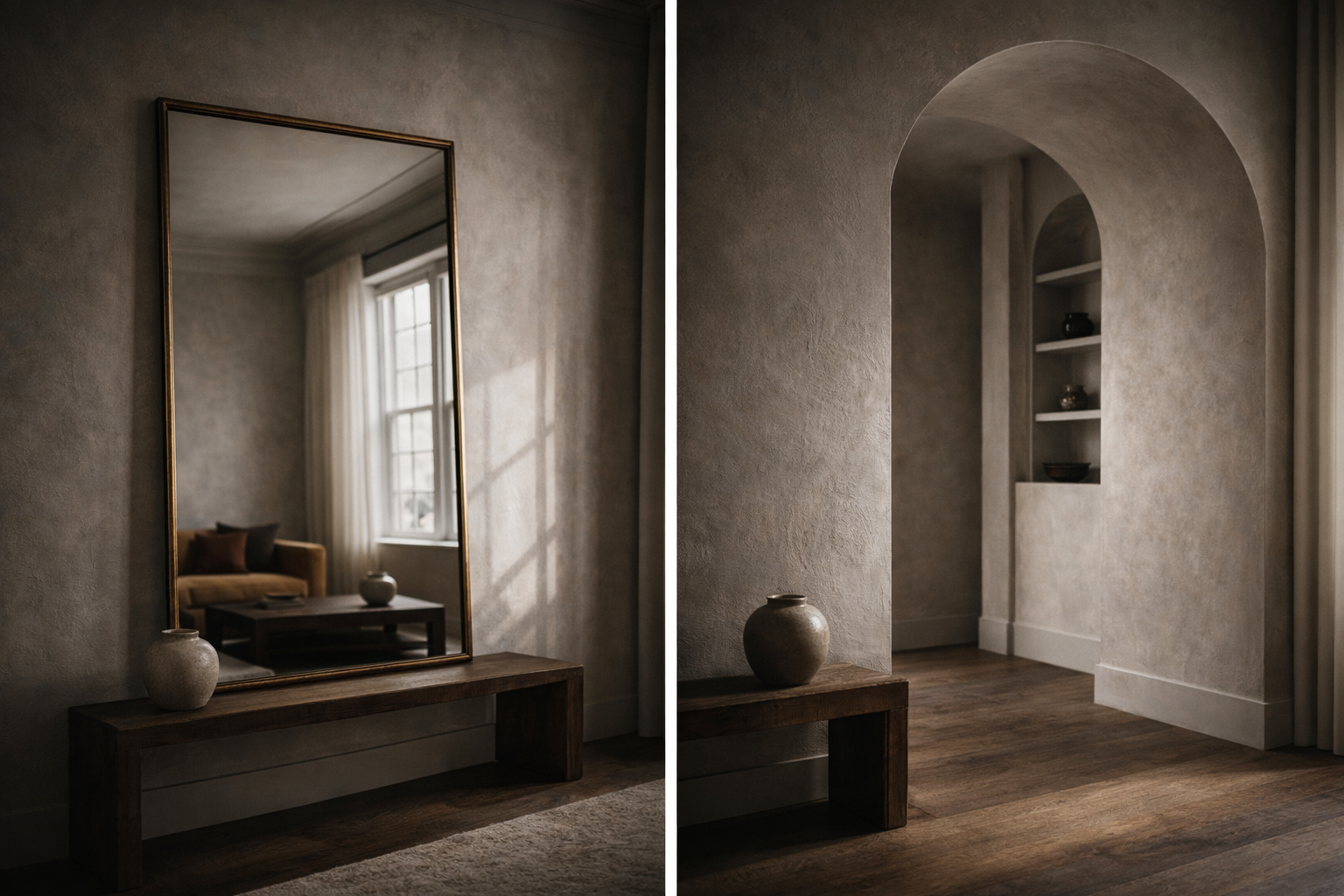 Some decor doesn’t just sit in a room, it changes how the room behaves. Mirrors and architectural elements fall into this category because they don’t rely on styling to make an impact. They alter scale, reflect light, and give a space presence without adding visual clutter.
