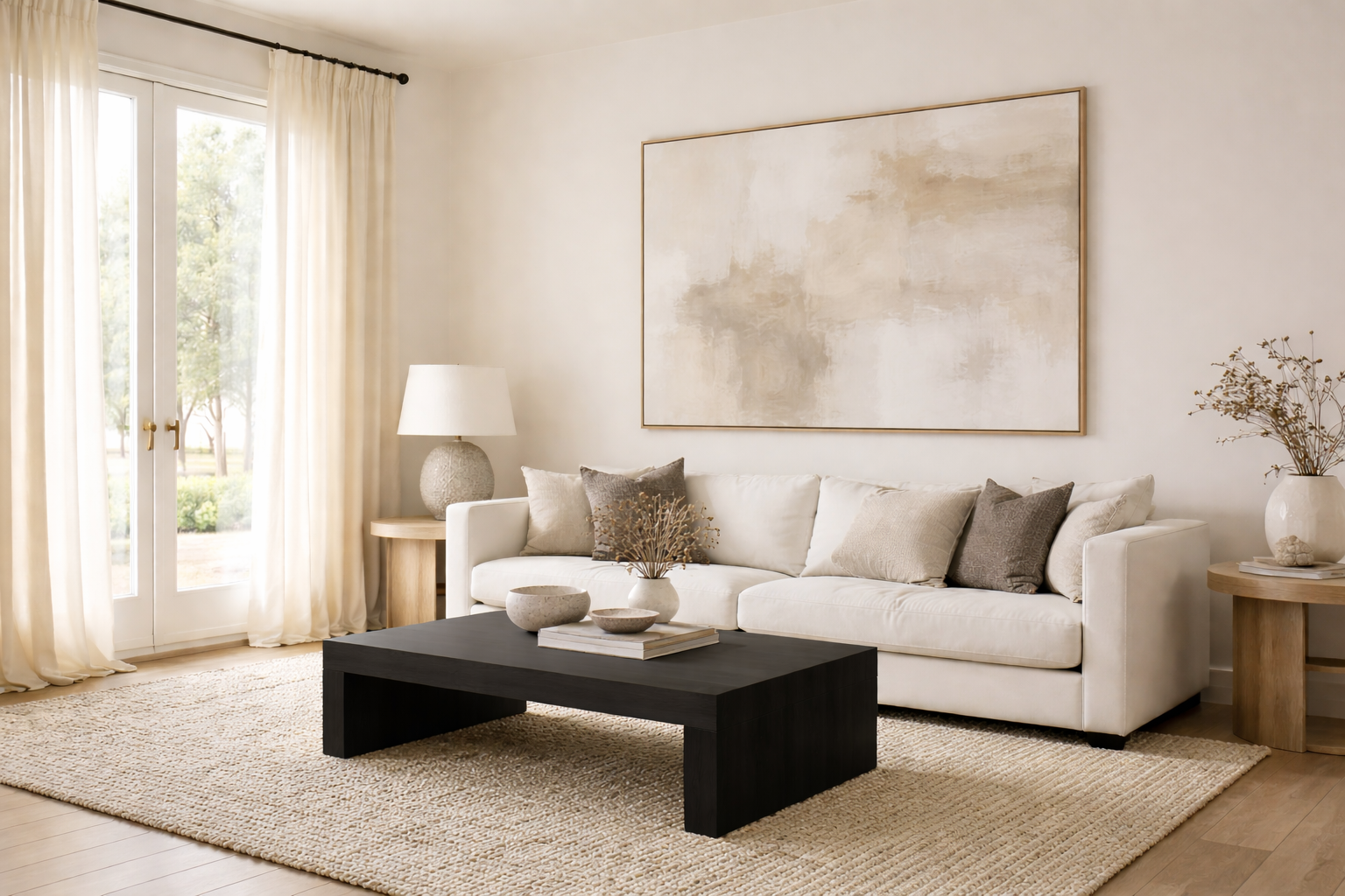 These are the pieces that keep a neutral room from feeling like it might drift away. When a space feels unfinished, it’s usually missing something with presence: scale, depth, or visual gravity.